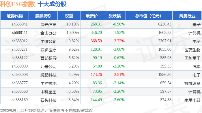 证券之星消息,1月28日,科创ESG(000691)指数报收于1665.88点,跌0.63%,成交710.13亿元,换手率2.19%。当日该指数成份股中,上涨的有15家,艾为电子以4.25%的涨幅领涨,下跌的有35家,禾迈股份以4.59%的跌幅领跌。