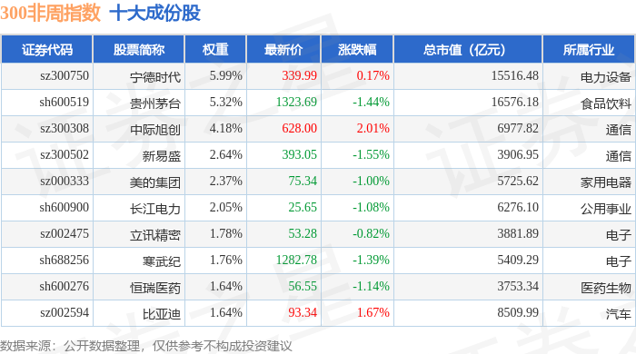 证券之星消息,1月28日,300非周(000969)指数报收于5434.29点,跌0.24%,成交5514.41亿元,换手率1.82%。当日该指数成份股中,上涨的有62家,卫星化学以8.86%的涨幅领涨,下跌的有133家,龙芯中科以4.26%的跌幅领跌。