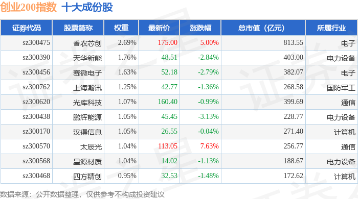 创业200(399019)指数十大成份股详情如下: