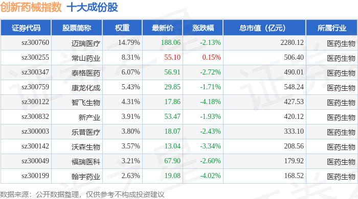 资金流向方面,创新药械(399265)指数成份股当日主力资金净流出合计15.37亿元,游资资金净流入合计2.06亿元,散户资金净流入合计13.31亿元。成份股资金流向详情见下表: