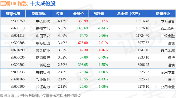 资金流向方面,巨潮100(399313)指数成份股当日主力资金净流出合计64.59亿元,游资资金净流出合计4.21亿元,散户资金净流入合计68.8亿元。成份股资金流向详情见下表: