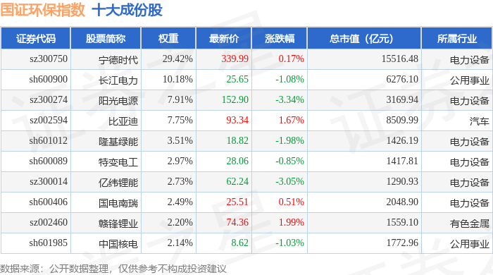 证券之星消息,1月28日,国证环保(399358)指数报收于5394.18点,跌0.69%,成交1135.05亿元,换手率1.57%。当日该指数成份股中,上涨的有11家,广汇能源以4.97%的涨幅领涨,下跌的有28家,福斯特以5.07%的跌幅领跌。