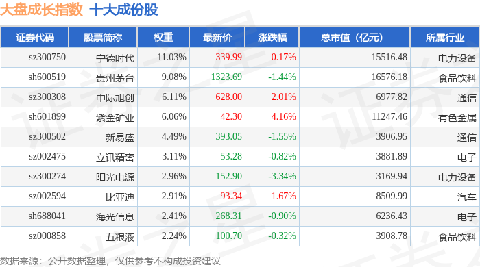 大盘成长(399372)指数十大成份股详情如下: