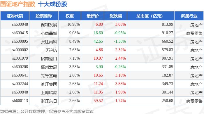 国证地产(399393)指数十大成份股详情如下: