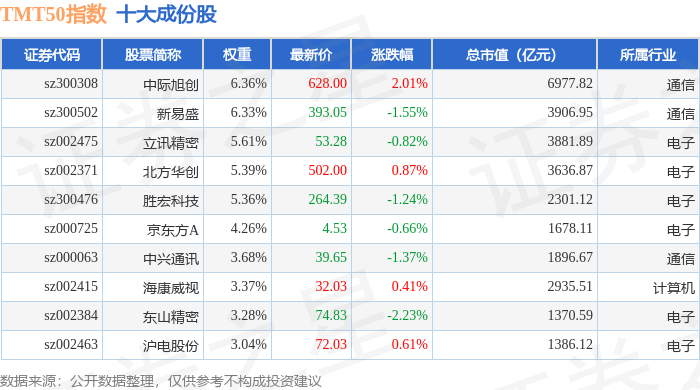 TMT50(399610)指数十大成份股详情如下: