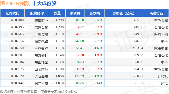 证券之星消息,1月28日,深100EW(399632)指数报收于5430.99点,涨0.05%,成交2867.42亿元,换手率1.58%。当日该指数成份股中,上涨的有39家,新诺威以12.9%的涨幅领涨,下跌的有60家,智飞生物以4.18%的跌幅领跌。