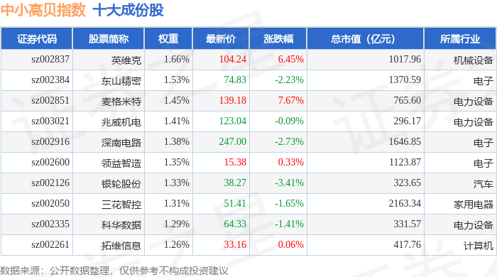 中小高贝(399664)指数十大成份股详情如下: