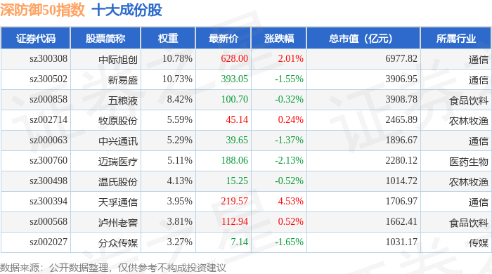 证券之星消息,1月28日,深防御50(399671)指数报收于10018.33点,跌0.37%,成交1174.62亿元,换手率3.4%。当日该指数成份股中,上涨的有18家,新诺威以12.9%的涨幅领涨,下跌的有31家,蓝色光标以8.29%的跌幅领跌。