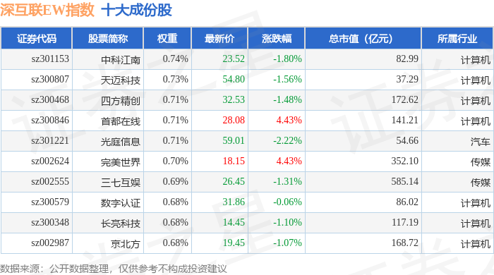 深互联EW(399677)指数十大成份股详情如下: