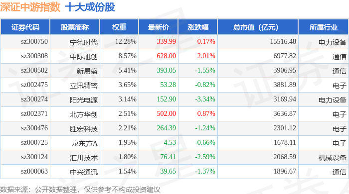 深证中游(399705)指数十大成份股详情如下: