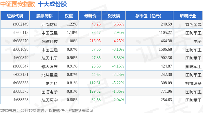 中证国安(399813)指数十大成份股详情如下: