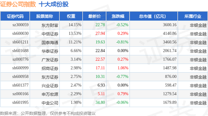 证券之星消息,1月28日,证券公司(399975)指数报收于841.06点,跌0.02%,成交435.75亿元,换手率1.38%。当日该指数成份股中,上涨的有27家,华安证券以2.53%的涨幅领涨,下跌的有17家,首创证券以3.38%的跌幅领跌。