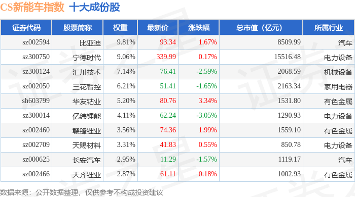 资金流向方面,CS新能车(399976)指数成份股当日主力资金净流出合计43.13亿元,游资资金净流入合计2.37亿元,散户资金净流入合计40.7亿元。成份股资金流向详情见下表:
