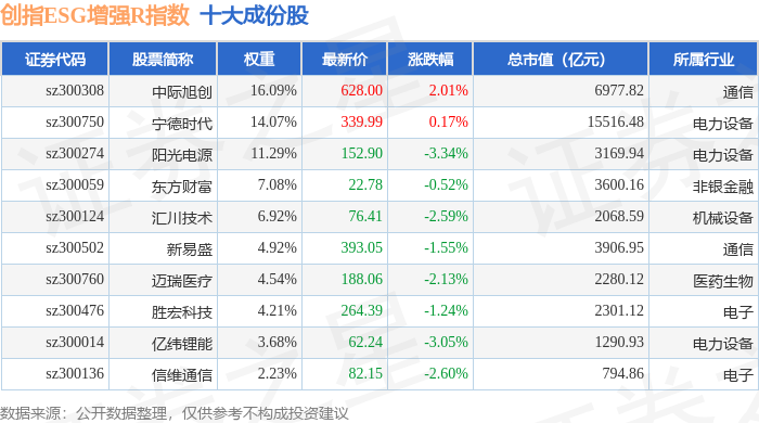 创指ESG增强R(470034)指数十大成份股详情如下: