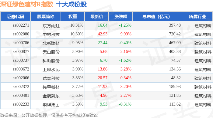 深证绿色建材R(470077)指数十大成份股详情如下: