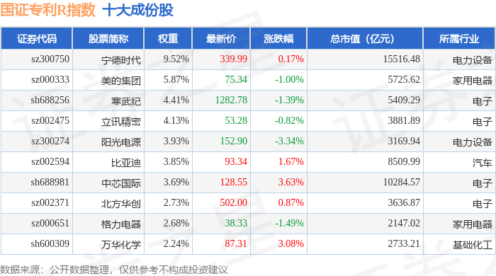 国证专利R(480070)指数十大成份股详情如下: