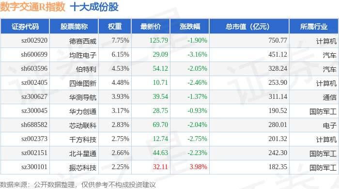 数字交通R(480075)指数十大成份股详情如下: