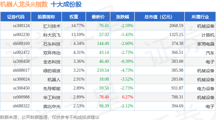 资金流向方面,机器人龙头R(480071)指数成份股当日主力资金净流出合计24.75亿元,游资资金净流入合计6.41亿元,散户资金净流入合计18.34亿元。成份股资金流向详情见下表: