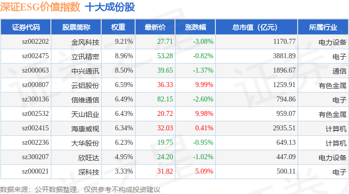 证券之星消息,1月28日,深证ESG价值(970061)指数报收于1987.98点,涨0.94%,成交786.96亿元,换手率3.12%。当日该指数成份股中,上涨的有24家,云铝股份以9.99%的涨幅领涨,下跌的有26家,泰胜风能以4.37%的跌幅领跌。