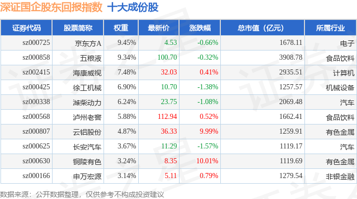 深证国企股东回报(970064)指数十大成份股详情如下: