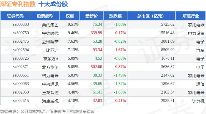 证券之星消息,1月28日,深证专利(970067)指数报收于5023.31点,跌0.67%,成交1178.64亿元,换手率2.16%。当日该指数成份股中,上涨的有13家,宏景科技以7.04%的涨幅领涨,下跌的有37家,迪安诊断以6.35%的跌幅领跌。