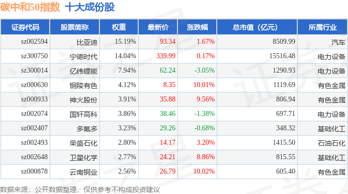 证券之星消息,1月28日,碳中和50(980021)指数报收于2409.43点,涨2.34%,成交746.26亿元,换手率2.41%。当日该指数成份股中,上涨的有33家,云南铜业以10.02%的涨幅领涨,下跌的有14家,首航新能以5.06%的跌幅领跌。