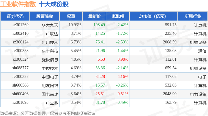 工业软件(980034)指数十大成份股详情如下: