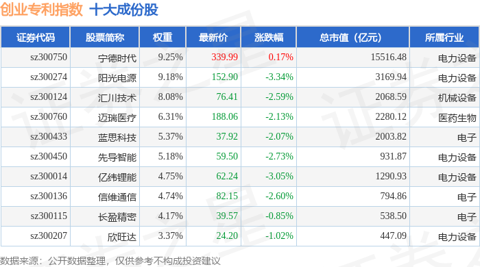 创业专利(970068)指数十大成份股详情如下: