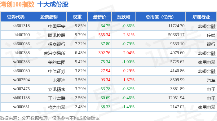 证券之星消息,1月28日,湾创100(980001)指数报收于1536.94点,跌0.12%,成交2097.64亿元,换手率1.56%。当日该指数成份股中,上涨的有38家,麦格米特以7.67%的涨幅领涨,下跌的有61家,捷佳伟创以5.97%的跌幅领跌。