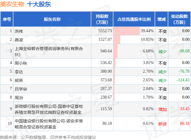 根据美农生物2025年三季报公布的十大股东详情如下: