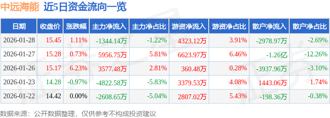 证券之星消息,截至2026年1月28日收盘,中远海能(600026)报收于15.45元,上涨1.11%,换手率2.06%,成交量71.66万手,成交额11.06亿元。