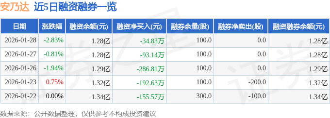 证券之星消息,截至2026年1月28日收盘,安乃达(603350)报收于38.09元,下跌2.83%,换手率3.24%,成交量1.42万手,成交额5471.63万元。