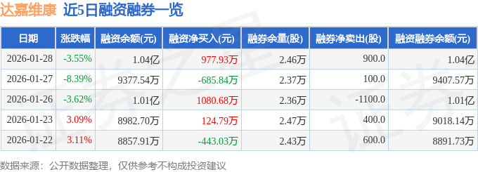 证券之星消息,截至2026年1月28日收盘,达嘉维康(301126)报收于12.22元,下跌3.55%,换手率10.22%,成交量14.09万手,成交额1.73亿元。