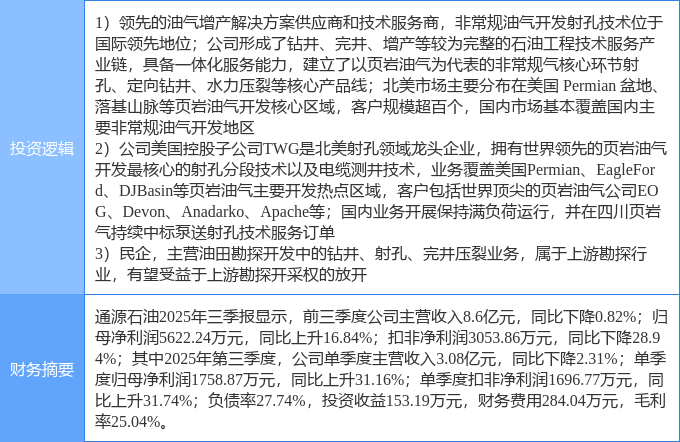 该股为油服,页岩气,油气改革概念热股,当日油服概念上涨4.34%,页岩气概念上涨3.11%,油气改革概念上涨2.52%。