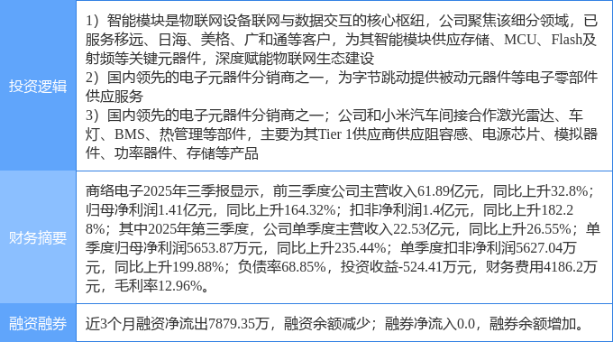 证券之星消息,商络电子1月29日涨停收盘,收盘价16.96元。该股于9点49分涨停,1次打开涨停,截止收盘封单资金为1.04亿元,占其流通市值1.24%。