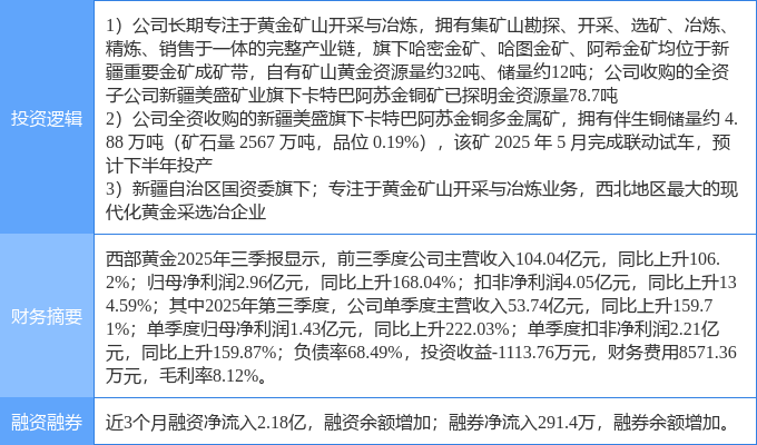 该股为黄金,新疆国企改革,有色 · 铜概念热股,当日黄金概念上涨7.47%,新疆国企改革概念上涨2.75%,有色 · 铜概念上涨2.27%。