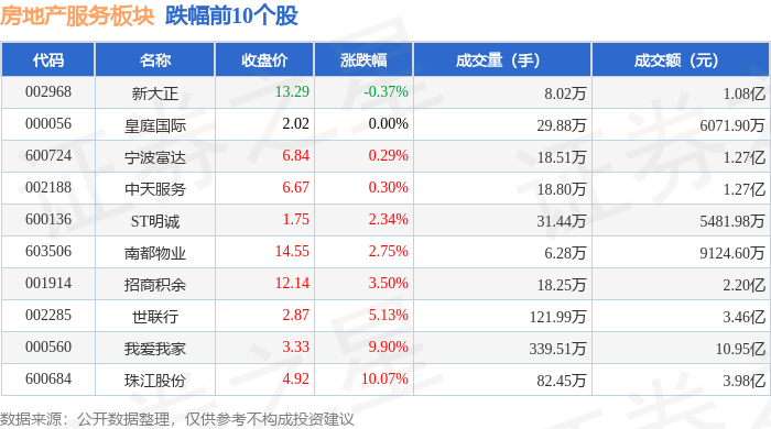 证券之星消息,1月29日房地产服务板块较上一交易日上涨4.56%,特发服务领涨。当日上证指数报收于4157.98,上涨0.16%。深证成指报收于14300.08,下跌0.3%。房地产服务板块个股涨跌见下表: