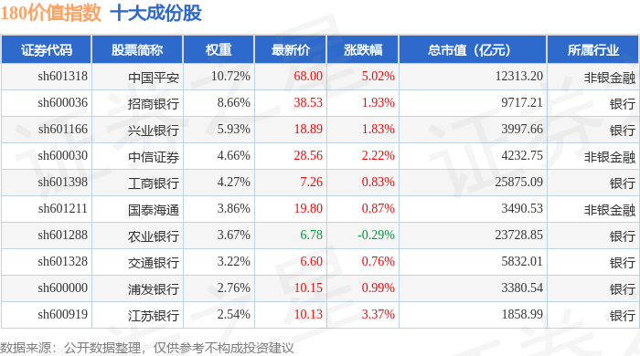 180价值(000029)指数十大成份股详情如下: