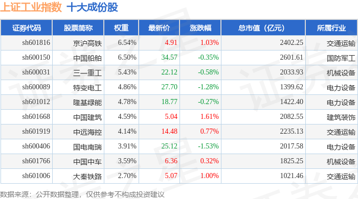 资金流向方面,上证工业(000034)指数成份股当日主力资金净流出合计62.21亿元,游资资金净流入合计26.87亿元,散户资金净流入合计35.34亿元。成份股资金流向详情见下表: