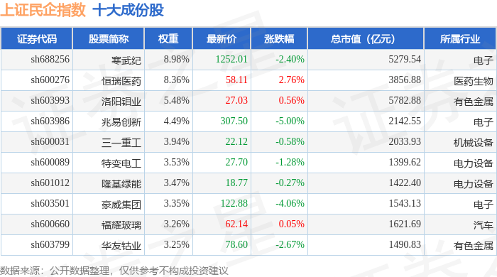上证民企(000049)指数十大成份股详情如下: