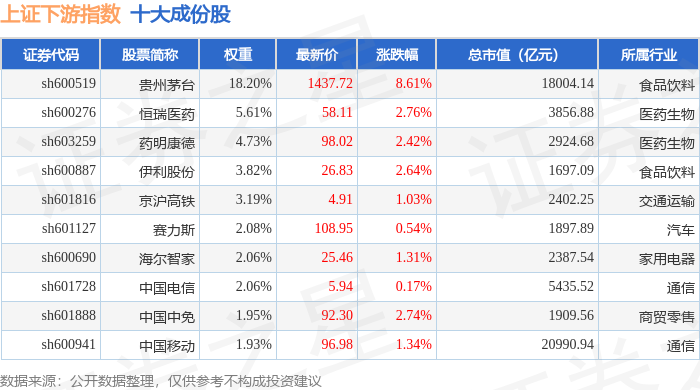 证券之星消息,1月29日,上证下游(000096)指数报收于4280.29点,涨2.81%,成交1645.59亿元,换手率1.41%。当日该指数成份股中,上涨的有97家,中国黄金以10.02%的涨幅领涨,下跌的有41家,君实生物以6.02%的跌幅领跌。