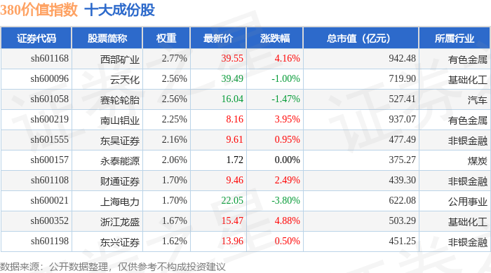 380价值(000118)指数十大成份股详情如下: