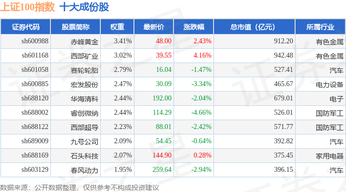 上证100(000132)指数十大成份股详情如下: