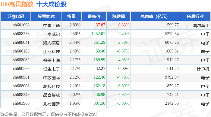 证券之星消息,1月29日,180高贝(000135)指数报收于6847.92点,跌0.89%,成交2294.56亿元,换手率1.81%。当日该指数成份股中,上涨的有33家,江西铜业以9.56%的涨幅领涨,下跌的有26家,晶合集成以6.97%的跌幅领跌。