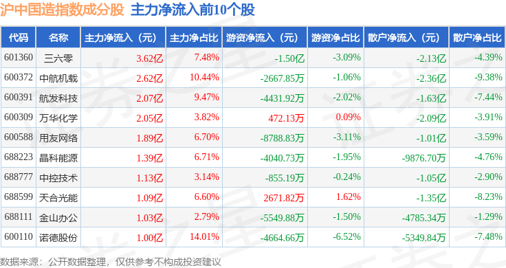 资金流向方面,沪中国造(000161)指数成份股当日主力资金净流出合计68.52亿元,游资资金净流入合计17.02亿元,散户资金净流入合计51.5亿元。成份股资金流向详情见下表: