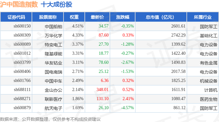 证券之星消息,1月29日,沪中国造(000161)指数报收于1927.23点,跌1.33%,成交1670.78亿元,换手率2.43%。当日该指数成份股中,上涨的有33家,三棵树以7.58%的涨幅领涨,下跌的有113家,今创集团以9.96%的跌幅领跌。