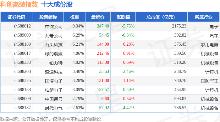 证券之星消息,1月29日,科创高装(000687)指数报收于1440.01点,跌2.42%,成交297.58亿元,换手率1.66%。当日该指数成份股中,上涨的有9家,思看科技以15.08%的涨幅领涨,下跌的有40家,芯碁微装以8.0%的跌幅领跌。