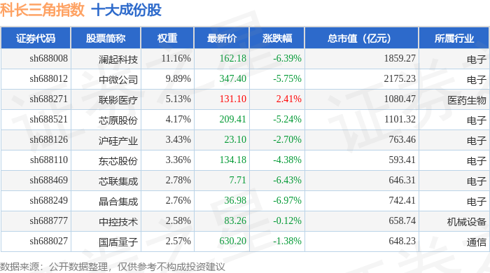 证券之星消息,1月29日,科长三角(000695)指数报收于1168.1点,跌3.48%,成交680.67亿元,换手率2.89%。当日该指数成份股中,上涨的有12家,奕瑞科技以4.56%的涨幅领涨,下跌的有50家,安集科技以8.8%的跌幅领跌。