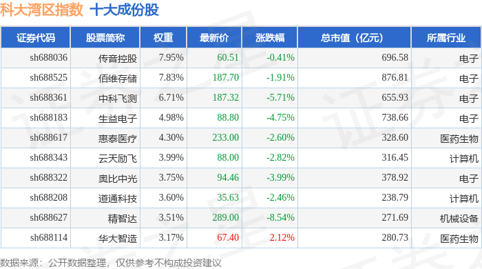 科大湾区(000697)指数十大成份股详情如下: