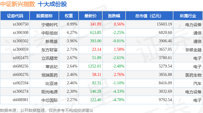 证券之星消息,1月29日,中证新兴(000964)指数报收于11357.39点,跌1.09%,成交4285.11亿元,换手率2.33%。当日该指数成份股中,上涨的有34家,中国铝业以7.53%的涨幅领涨,下跌的有65家,生益科技以6.87%的跌幅领跌。